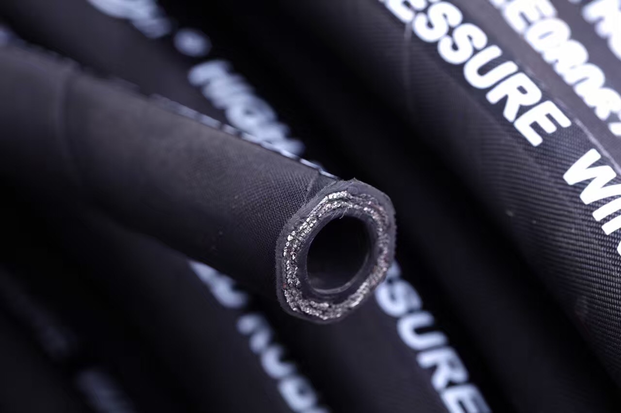 3、膠管破裂,破口附近編織鋼絲生銹。若高壓油管破裂,剝?nèi)ネ饽z層檢查發(fā)現(xiàn)破口附近編織、纏繞鋼絲有生銹現(xiàn)象,這主要是由于外膠層潮濕或腐蝕性物質(zhì)的作用,削弱了膠管強(qiáng)度,致使高壓時(shí)破裂。